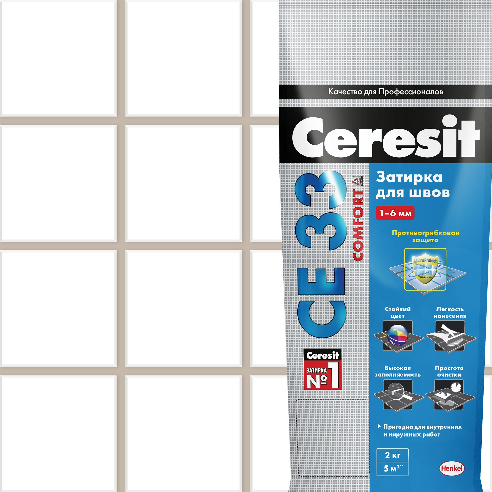 Затирка CE 33 предназначена для заполнения швов керамических и каменных облицовок, устроенных на недеформирующихся основаниях (таких как бетон, цементные стяжки и штукатурки), на полах и стенах внутри и снаружи зданий, при ширине шва до 6 мм. Может применяться в небольших крытых бассейнах. Ceresit CE 33 — тонкошовная затирка с противогрибковым эффектом, для внутренних и внешних работ. Пригодна для эксплуатации внутри влажных помещений: ванных, душевых, крытых бассейнов.