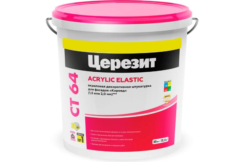 Штукатурка Ceresit CT 64 обеспечивает прочное и долговечное покрытие, устойчивое к атмосферным воздействиям, ультрафиолету и механическим повреждениям. Благодаря акриловому составу, она отлично сопротивляется влаге и не дает развиваться плесени и грибку.