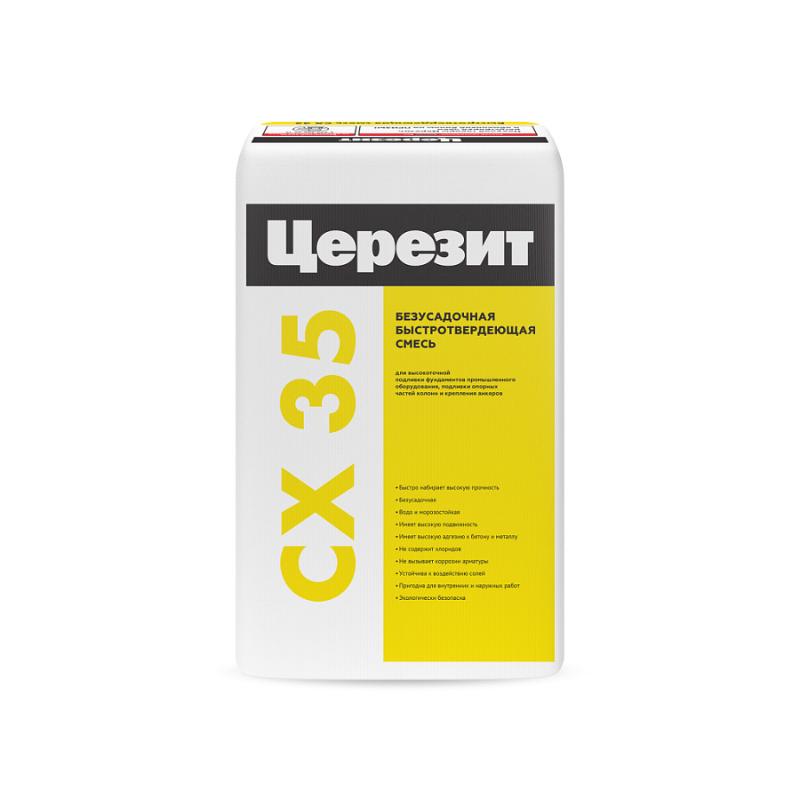 Ceresit CX 35 - это безусадочная высокопрочная быстротвердеющая монтажная смесь, разработанная специально для удобного и эффективного монтажа различных строительных конструкций.