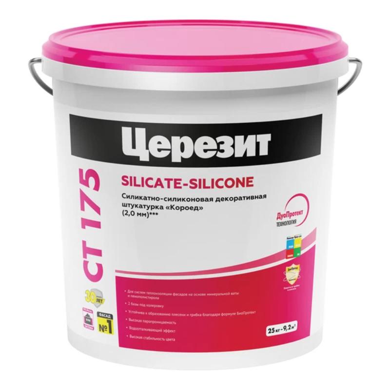 Штукатурка Ceresit CT 175 - это силикатно-силиконовая короедная штукатурка, предназначенная для создания декоративных покрытий толщиной 2 мм. Этот материал идеально подходит для создания зернистой и бороздчатой текстуры на различных поверхностях, таких как бетон, цементные и гипсовые штукатурки, гипсокартон, древесноволокнистые плиты, как внутри, так и снаружи зданий.